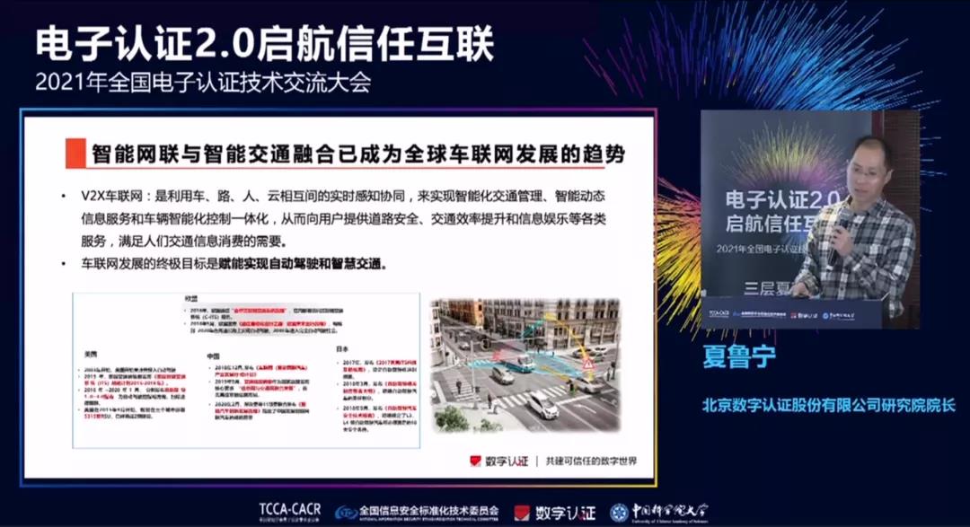 银河官网研究院院长夏鲁宁主要分享了电子认证在车联网中的应用实践。当前,车联网安全已成为决定车联网产业健康持续发展的重要因素,夏鲁宁提到,基于密码技术构建车联网安全和信任体系,已成为车联网安全发展的大势所趋。在实践中,通过加密解密、数字签名等密码技术,实现车联网各实体间的身份可信、数据可信及隐私保护,可以有效保护车-车、车-路、车-云及车-人的交互数据安全,保障车联网业务有序开展。随着车联网逐渐走向商用,密码应用将助力车联网赋能自动驾驶和智慧交通,发挥强有力的安全保障作用。