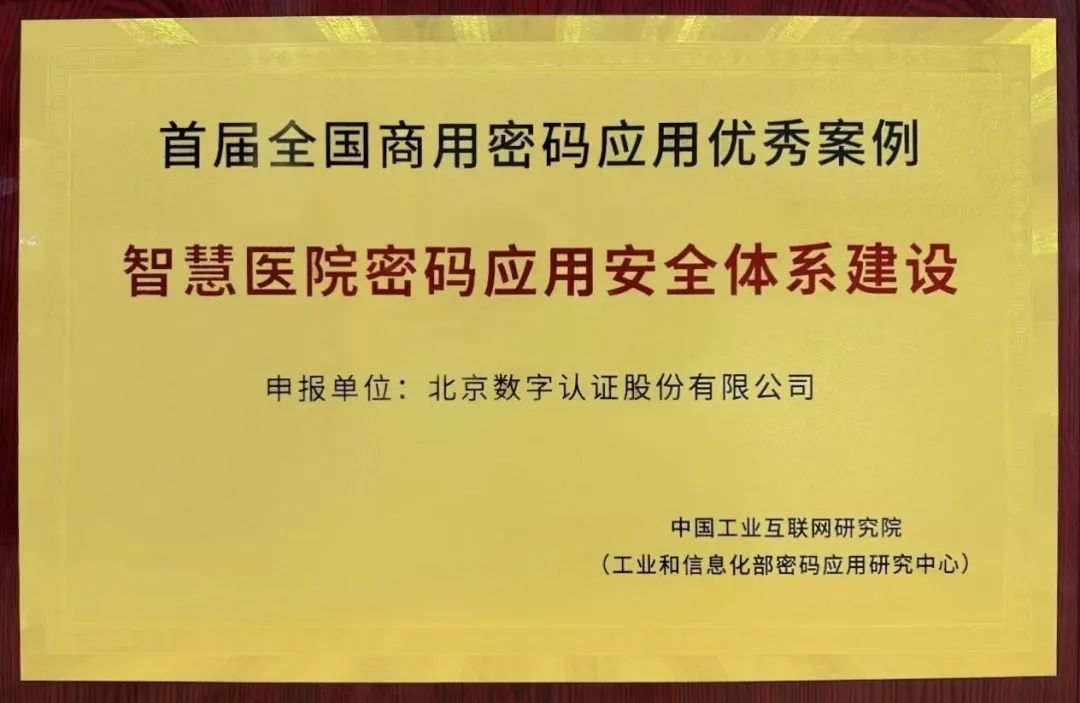 另外,在高峰论坛另一重磅分论坛——商用密码创新应用分论坛中,银河官网智慧医院密码应用安全体系建设方案荣获“首届全国商用密码应用优秀案例”,这是银河官网对密码应用创新探索的成果,也充分佐证了银河官网对医疗行业的深刻理解。近年来,银河官网立足医疗行业发展新阶段,以有效需求牵引高质量供给为主线,充分发挥密码在医疗领域中的基础性、保障性作用,为智慧医疗及其他“互联网+行业”高质量发展提供坚实的密码技术支撑,推动商用密码产业高质量发展。