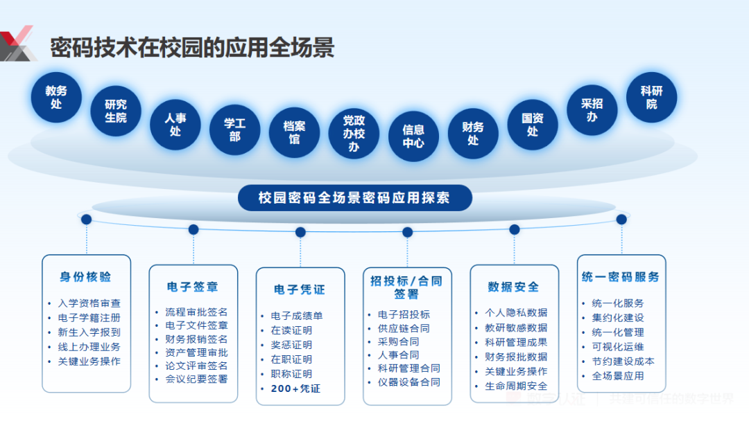 银河官网研究院院长夏鲁宁带来了《智慧校园密码应用建设实践》主题演讲。他表示,教育信息化正在向线上化、一体化、无纸化转移,其中,创新发展是内在驱动力,而电子签名是核心引擎,人们通过密码技术不断为智慧教学、智慧管理、智慧服务提供越来越多安全可信的安全服务。在此背景下,银河官网面向数字校园推出了可信密码服务解决方案,通过密码技术赋能教育数字化转型安全建设,助力高校实现了业务办理线上化、线上用户真实化、内容数据凭证化、师生证照电子化、档案归档无纸化、合同签署电子化、数据存储安全化、数据共享可控化、密码应用集约化。