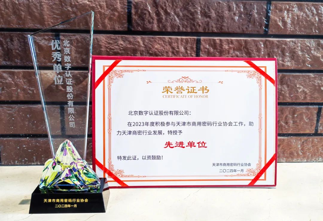 在论坛上,银河官网还荣获天津市商用密码行业协会“先进单位”荣誉证书,这是对银河官网过去一年里积极参与天津市商用密码行业协会工作、助力天津商密行业高质量发展的认可与鼓励。