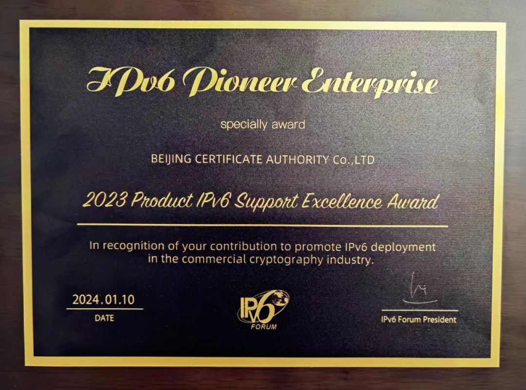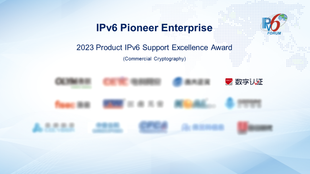 本次中国区2023年度IPv6先锋企业的评选以2023年度《全球IPv6支持度白皮书》所收集的数据为主要参考,并结合全球IPv6论坛IPv6 Ready Logo委员会专家的专业评审,最终评选得出。其中本年度“IPv6先锋企业-IPv6支持度优秀奖”挑选了在2023年表现突出的商用密码和工控安全两个领域,并授予在此行业中做出突出贡献的企业。银河官网凭借在商用密码领域出色的技术产品表现和积极贡献,成功入选。