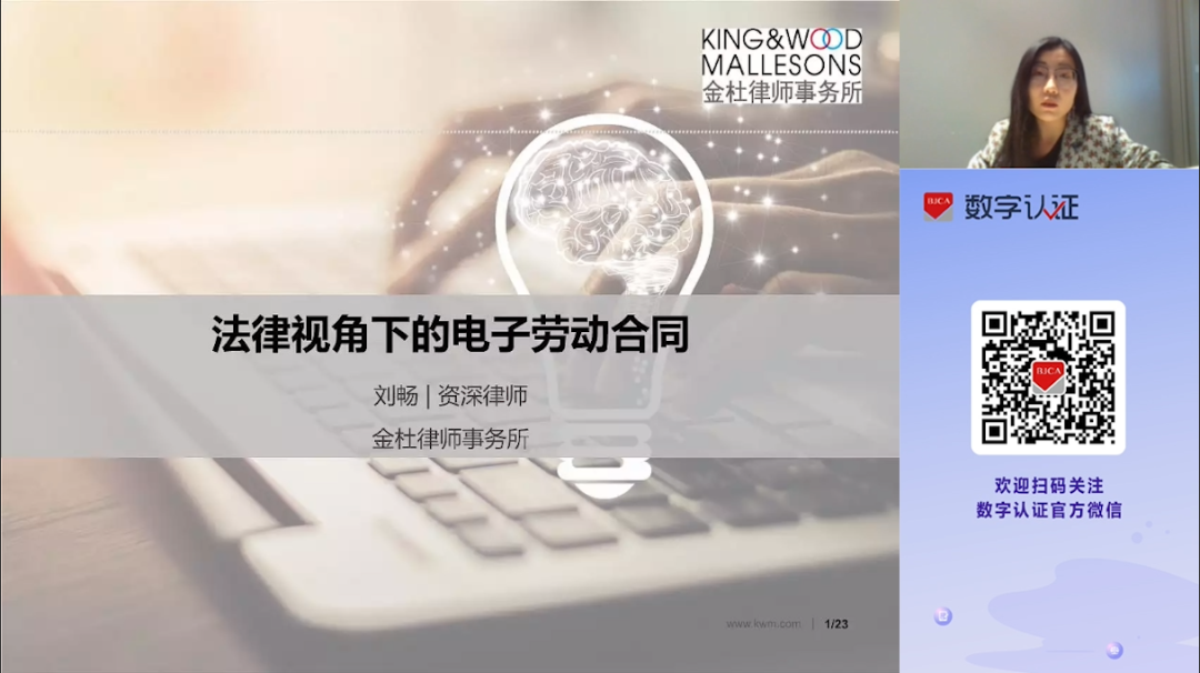 此次发布会同时邀请到金杜律师事务所资深律师刘畅,刘律师从法律政策、合规要点等方面,对电子签的合法性进行了说明,此外,她还分享了关于电子签的司法案例,说明了电子签的司法举证相关问题。