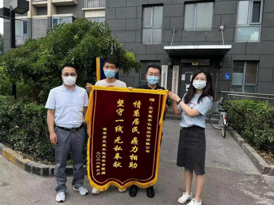 6月20日至21日,公党委副书记、工会主席潘峰一行,先后前往石景山区碣石坪社区、丰台区东大街西里社区、通州区葛布店北里社区,慰问看望下沉干部韦子健、韦翔、王曦晨,详细了解他们在下沉社区岗位上,工作开展情况及身体状况,充分肯定了他们在关键时刻勇于担当、冲锋在前的精神。下沉社区书记和工作人员对银河官网下沉干部在防疫关键时刻挺身而出,顶住防疫工作人员少、核酸采集社区居民多、24小时值守任务重等困难,坚守一线岗位无私奉献的精神表示高度肯定和赞扬,并对银河官网公司支持防疫工作、及时支援防疫物资表示感谢。期间,通州区葛布店北里社区向银河官网公司赠送感谢锦旗。
